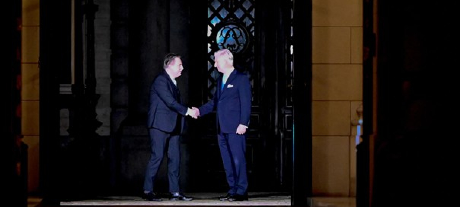 Premier Bart De Wever (links) met koning Filip. © Elias Rom