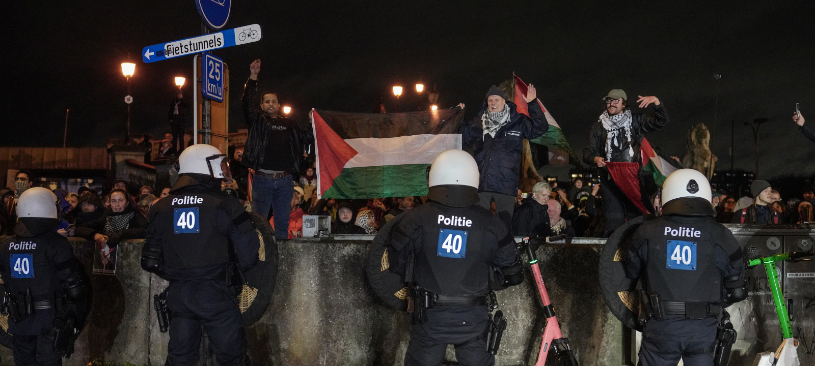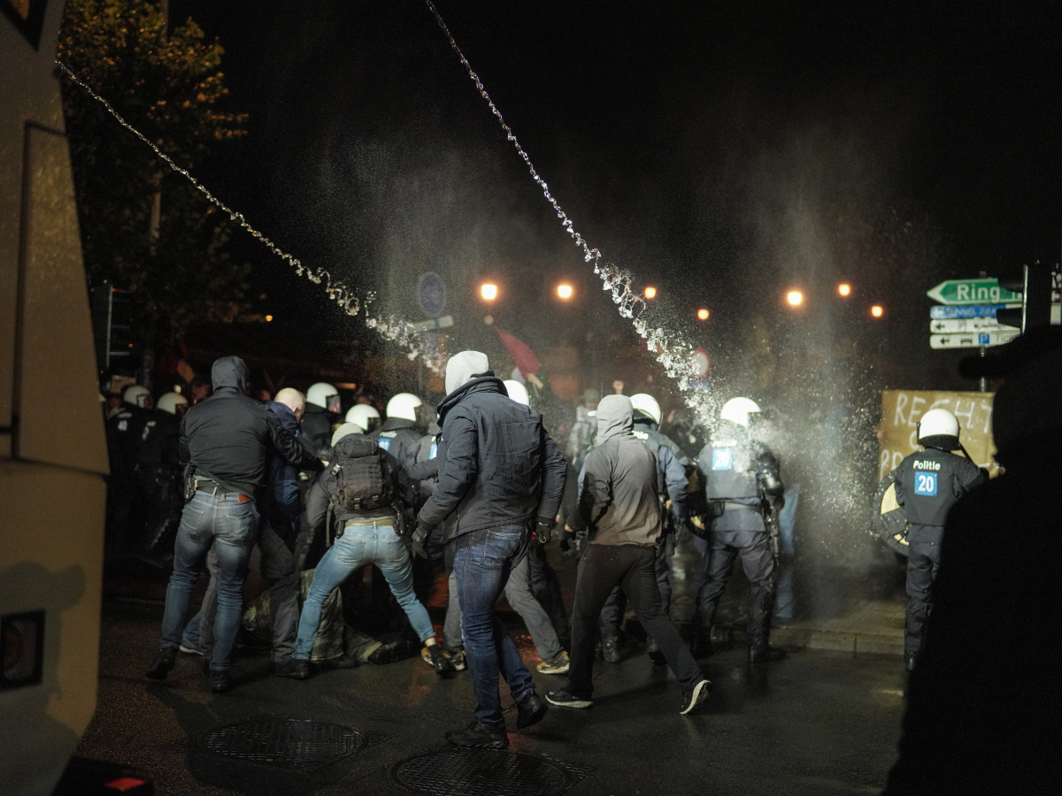 Opnieuw sloeg de oproerpolitie maandagavond hardhandig toe tijdens een protest van 'Antwerpse Coalitie voor Palestina' in Antwerpen. De betoging tegen de genocide in Gaza en de banden van de stad Antwerpen met Israël mag van het stadsbestuur alleen nog doorgaan aan het Steenplein en niet langer aan de Suikerrui, naast het stadhuis. Dat werd tot voor kort wel nog gedoogd. Toen er alsnog betogers kwamen opdagen aan de Suikerrui, werden ze verdreven naar het Steenplein. Daarbij werd het waterkanon ingezet en werden enkele betogers bestuurlijk aangehouden.
