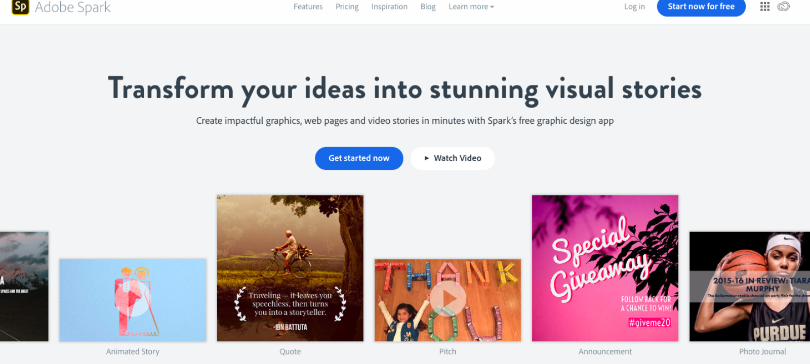 - MAAK EEN ACCOUNT – Surf naar https://spark.adobe.com en klik op ‘Start now for free’ rechtsboven. Maak je account aan.