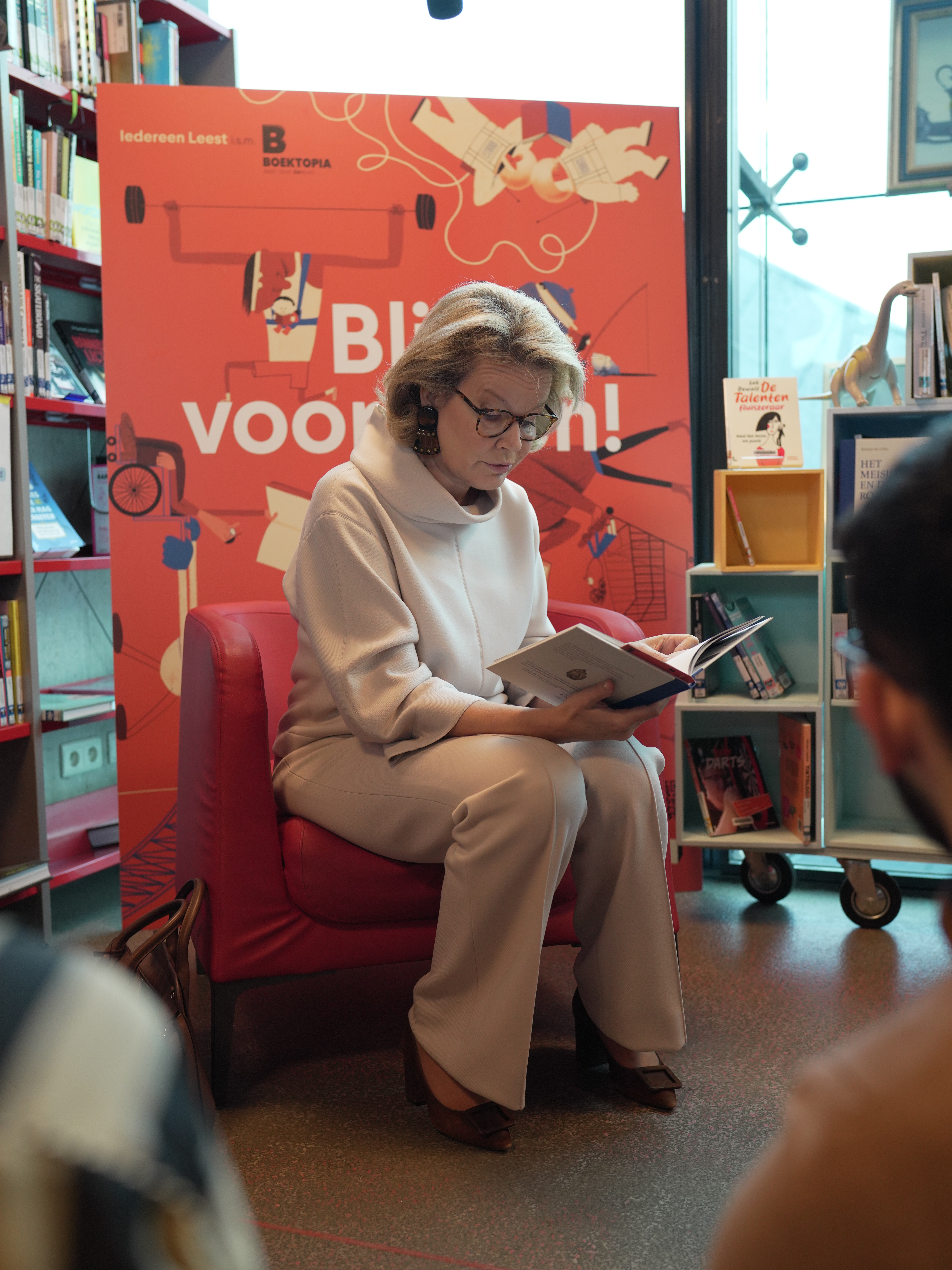 Hoog bezoek in jongerenbib Kubus van de Antwerpse bibliotheek Permeke. Niemand minder dan koningin Mathilde kwam langs om de Voorleesweek, een initiatief van Iedereen Leest, te openen. Ze las voor aan enkele jongeren en ging met hen in gesprek over (voor)lezen, mentaal welzijn en verbinding. Reporter Imania Silva Gomes maakte er deze video over.
